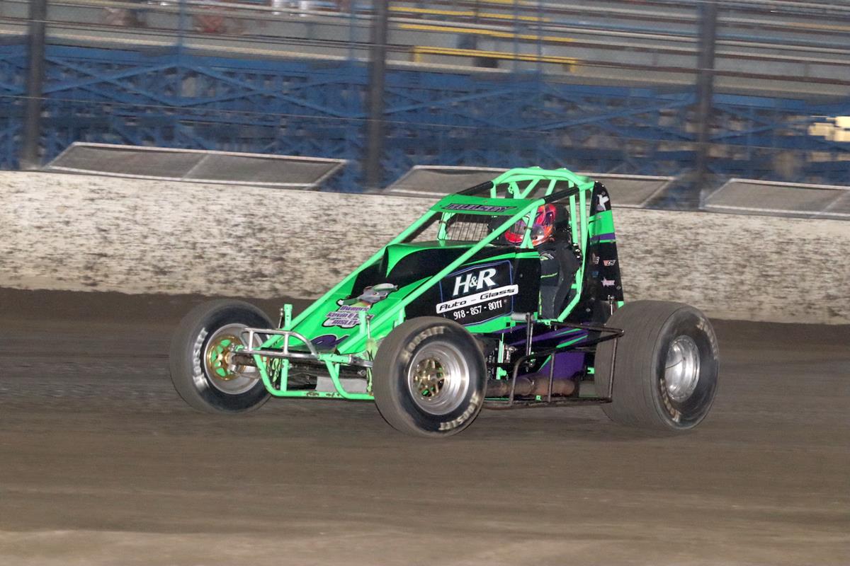 By John Rittenoure (Richard Bales photo) - KELLYVILLE, Okla. (August 16, 2025) - Ty Hulsey gambled on the low groove being the best place to run in Saturday’s Ortco, Inc. United Sprint League presented by Same Day Auto Repair main event at Creek County Speedway, and it was.