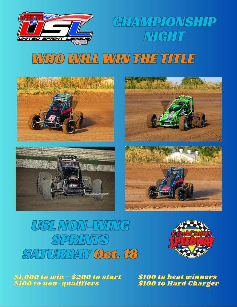 By John Rittenoure - GLENPOOL, Okla. (October 14, 2025) - The 2025 Ortco, Inc. United Sprint League presented by Same Day Auto Repair season comes to a close Saturday at Creek County Speedway and so does the chase to crown a new champion.